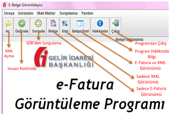 - Hakkında : EFatura Görüntüleme Programı ‘nın sürümünü gösterir.